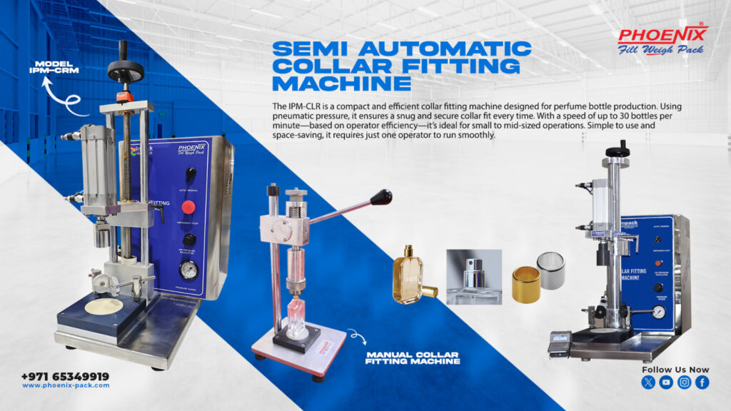 A specialized solution for precise and efficient collar fitting on perfume bottles, ensuring a professional and secure finish to enhance product presentation.